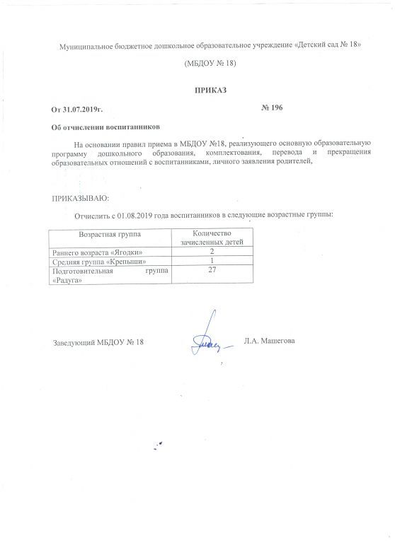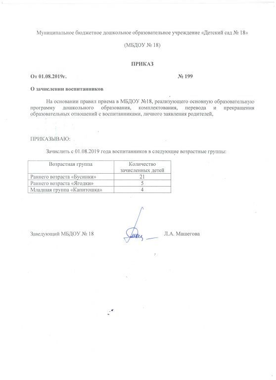 Приказ о приеме детей на обучение по образовательной программе дошкольного образования